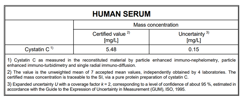 冷冻人血清中的胱抑素C标准物质用于认证的分析方法–颗粒增强免疫比浊法、颗粒增强免疫浊度法和单径免疫扩散法