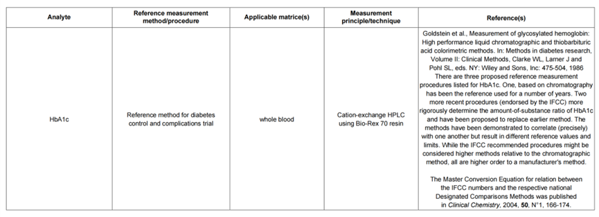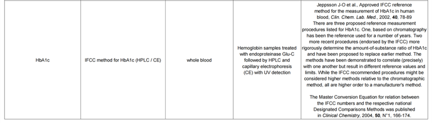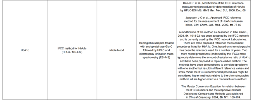 JCTLM推荐的HbA1c参考方法[2]有3个,具体见下表: