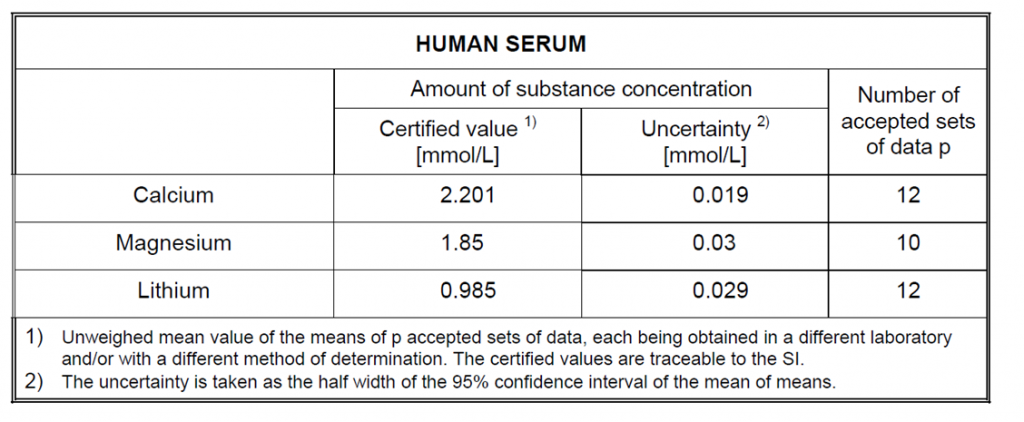 人血清中电解质成分分析标准物质(钙,镁、锂)使用说明–为了准备使用,必须根据认证报告第11节所述的程序对材料进行复溶。