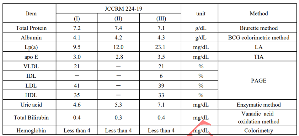 JCCRM 224 (224)冷冻人血清中高密度脂蛋白胆固醇、低密度脂蛋白胆固醇和甘油三酯标准物质可追溯性